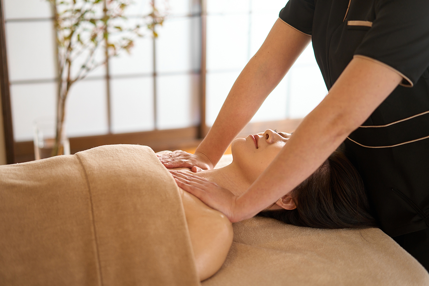 - Massage chuyên sâu: Kết hợp các kỹ thuật day, ấn, lăn, vuốt với các loại dầu dưỡng, kem thảo dược giúp làm mềm cơ, tan cục máu đông, tăng linh hoạt cho vùng cổ vai gáy.